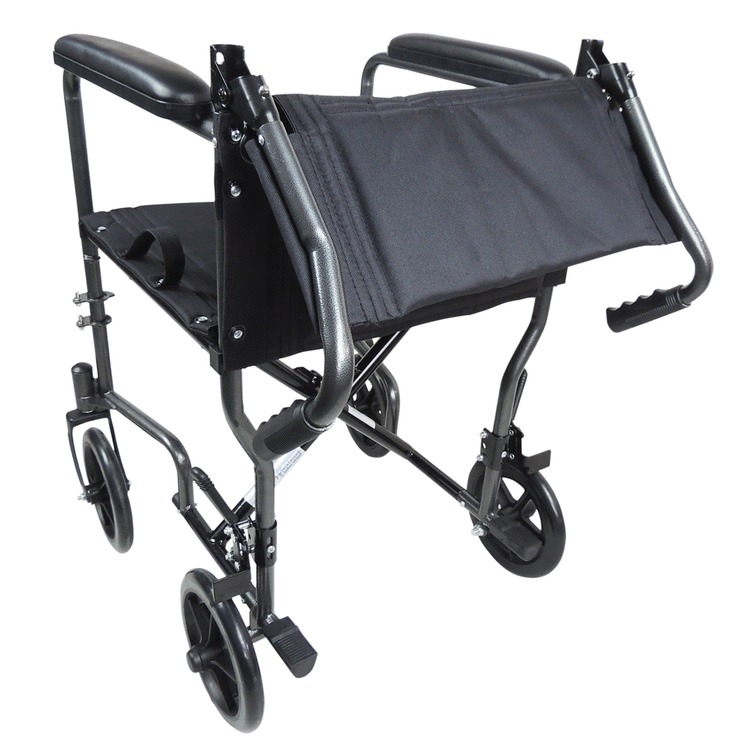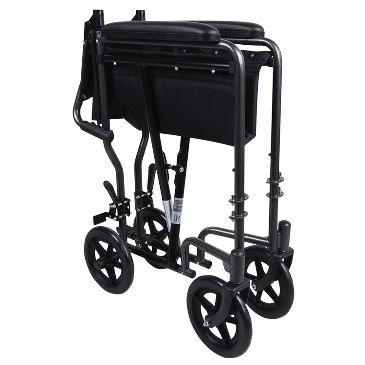 Aidapt Black Hammer Finish Steel Compact Transport Wheelchair.