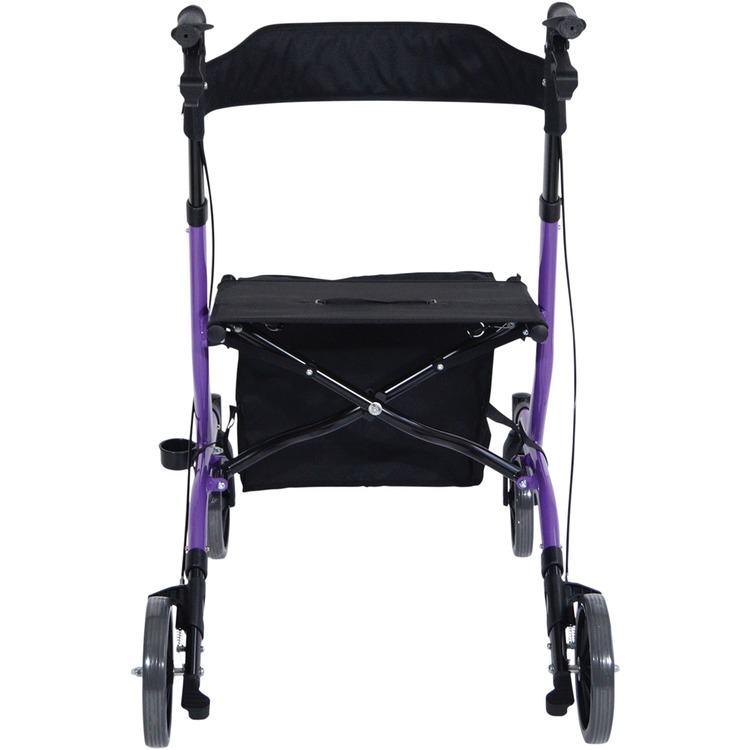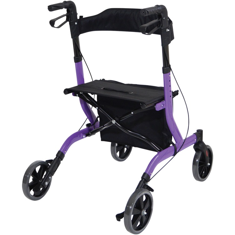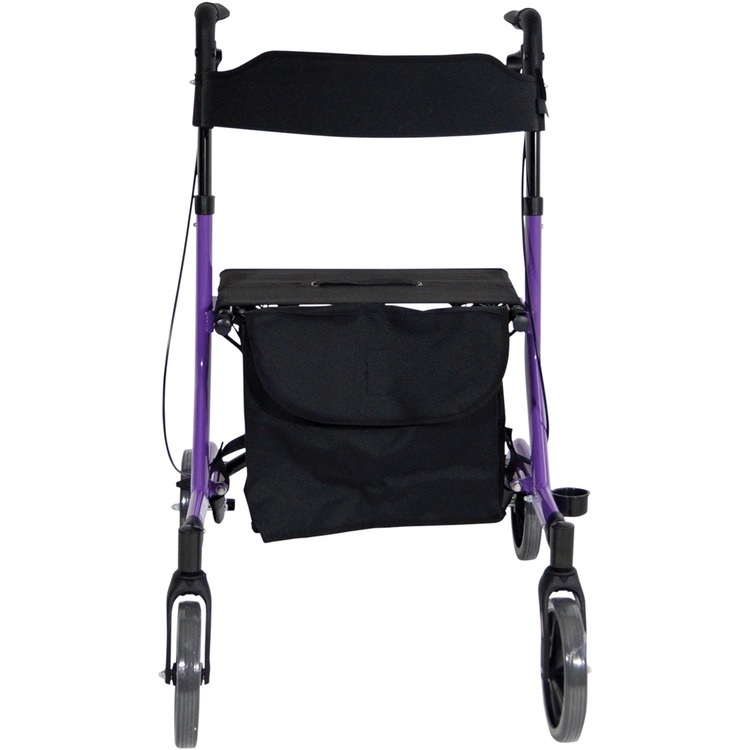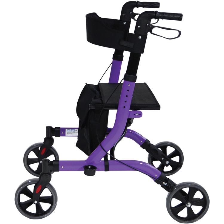 This purple Deluxe Aidapt Ultra Lightweight, Aluminium Four Wheeled Rollator has a very modern and stylish design with many great features. It has an aluminium frame, a seat and a detachable bag for small items of shopping is secured under the seat.
