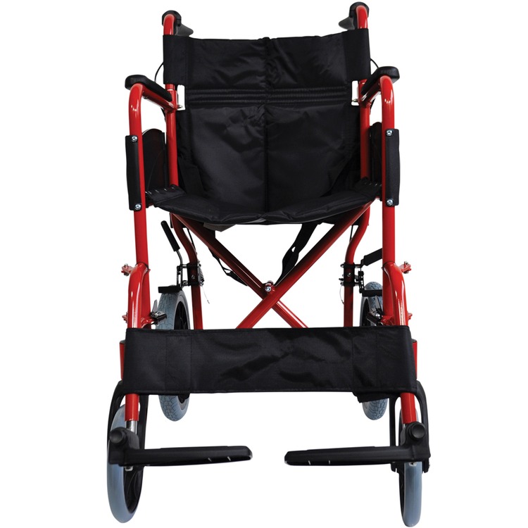 This deluxe red attendant steel wheelchair from Aidapt is...