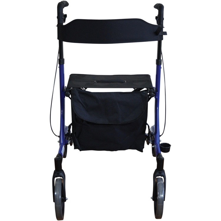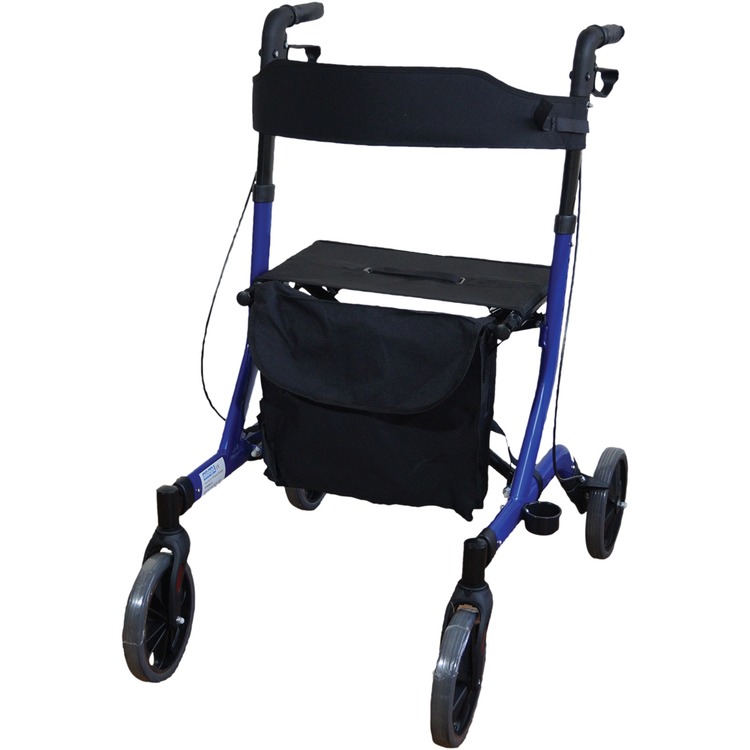 This four-wheeled rollator also features an integral robust canvas seat, padded backrest and an integral walking stick holder. A handy, detachable shopping bag is included for storing small items.