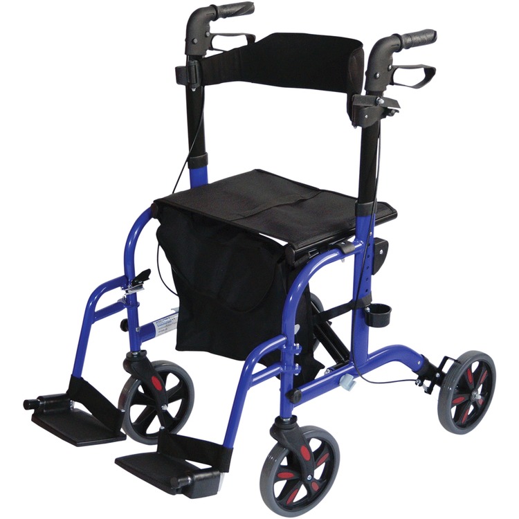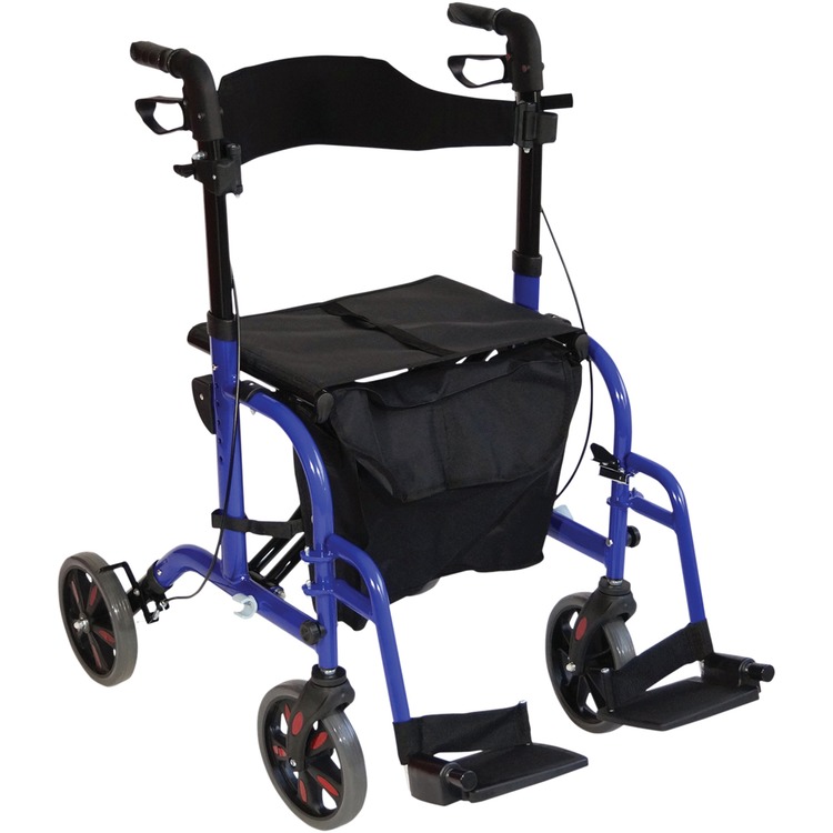 This blue frame Aidapt Duo Deluxe 2 in 1 Rollator and Transit Chair is a high quality mobility walking aid that is multi-use.