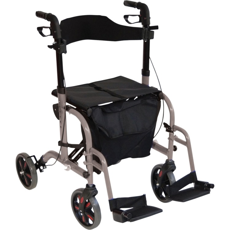 This model allows the user to walk with the Rollator and sit down to rest when needed. It has built in footrests allowing it to be used as a transit chair so that the user can be pushed by a carer.