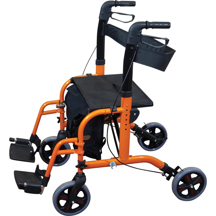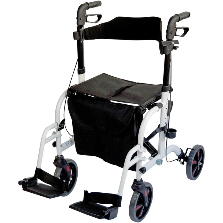 This model allows the user to walk with the Rollator and sit down to rest when needed. It has built in footrests allowing it to be used as a transit chair so that the user can be pushed by a carer.