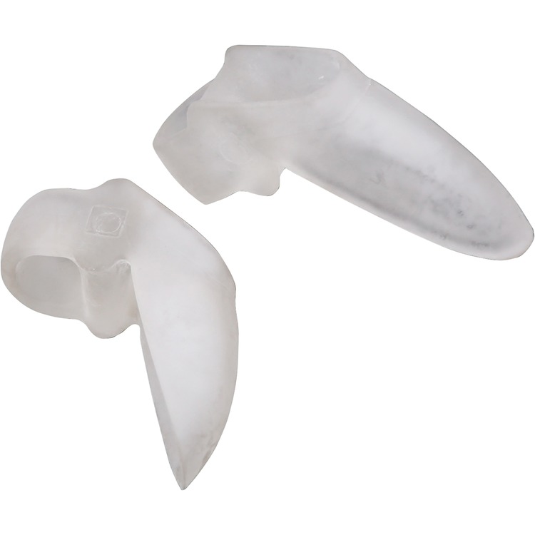Small soft gel bunion protectors designed to provide protection between the big toe and shoe, helping align the big toe and aid pain relief caused by bunions.
