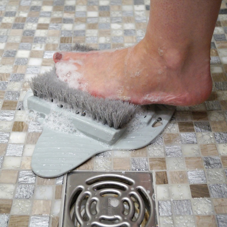 The Aidapt Foot Brush is designed so that youcan effortlessly scrub your toes in the bath or shower. The innovative design offers an anti-slip base made of durable, flexible silicone with suction cups. It offers wear resistant bristles that conveniently clean your feet and toes without needing to bend over. The scrubber brush has a hanging slot for easy storage.