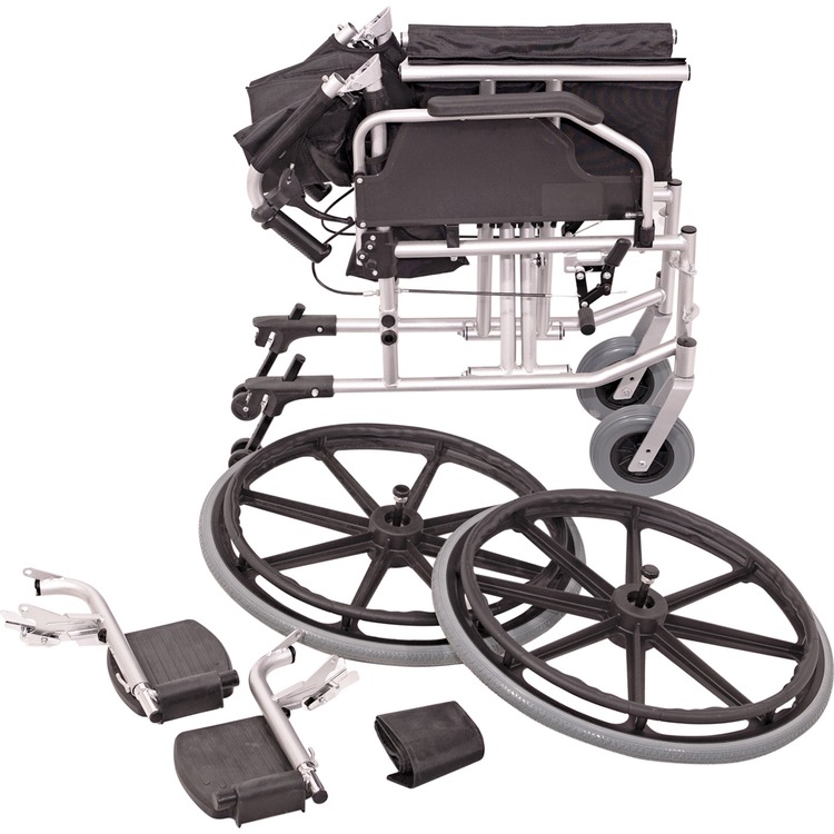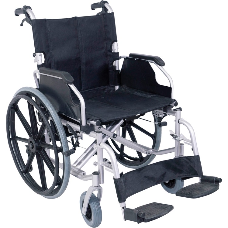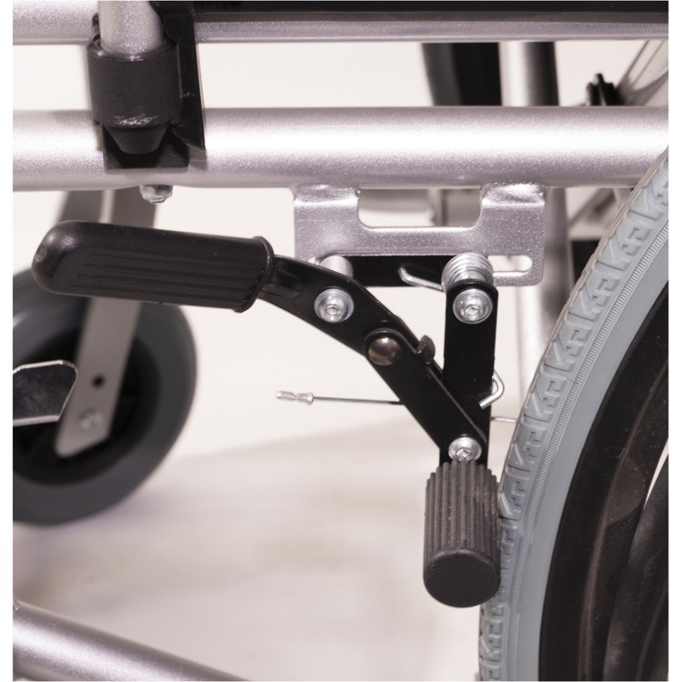 Features include quick release rear wheels, flip up armrests, 20" wide padded seat for comfort, hand brakes for the carer, anti tilt wheels at the rear, PU armrests, foldable backrest and detachable footrests. Maximum user weight limit 180kg (28Stone).
