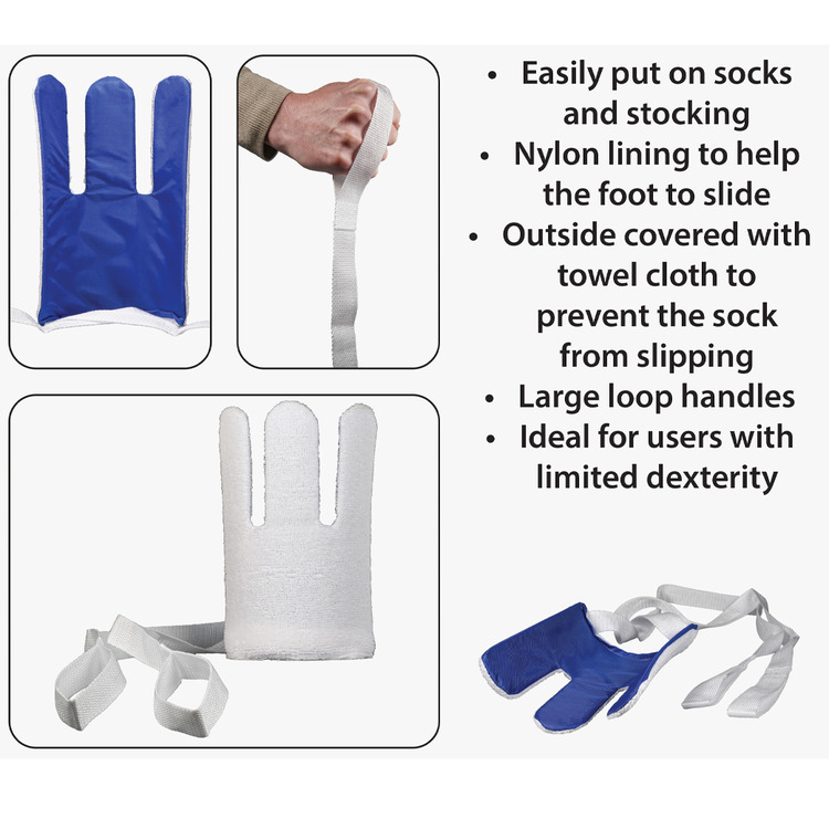 The nylon lining of the sock and stocking aid helps the foot to slide easily through the garment.