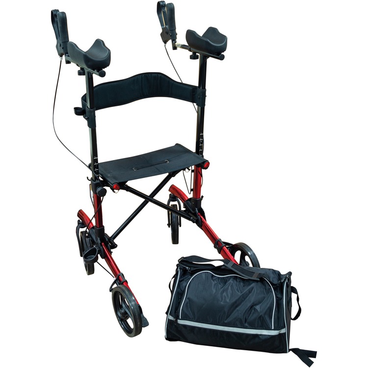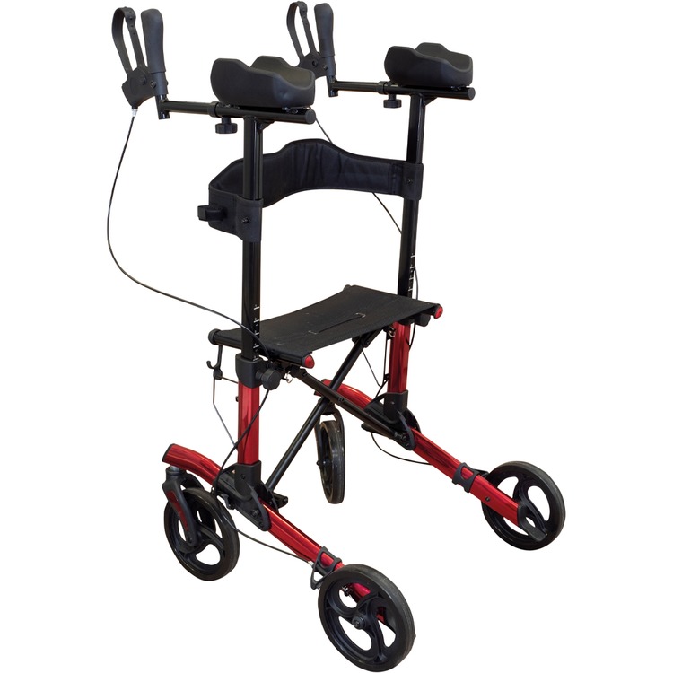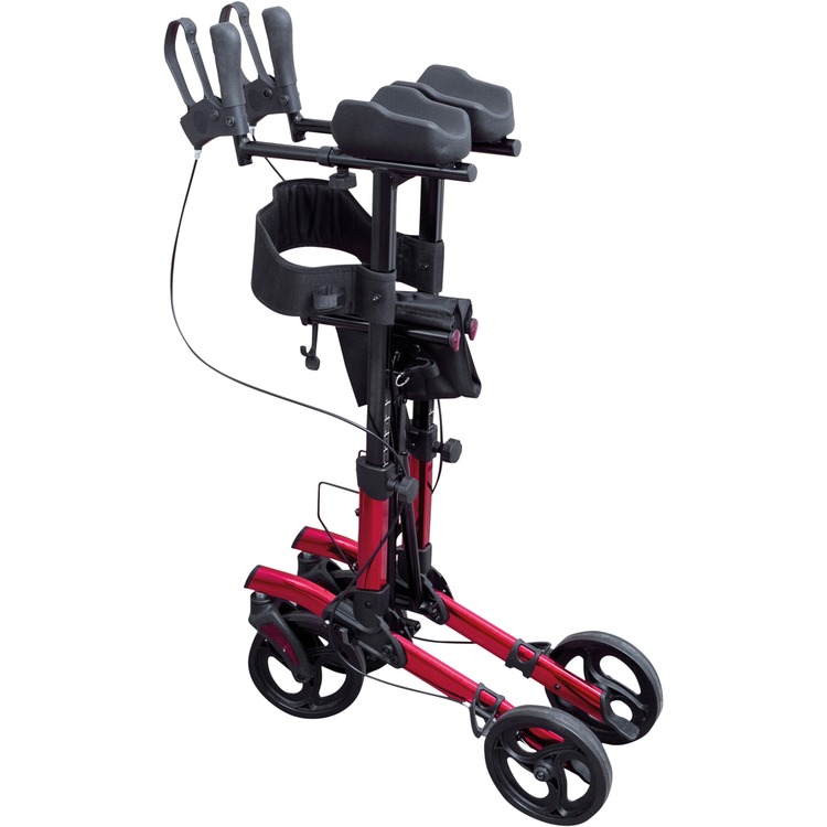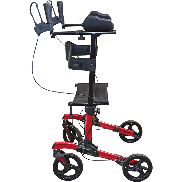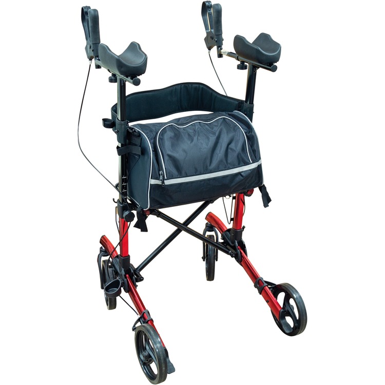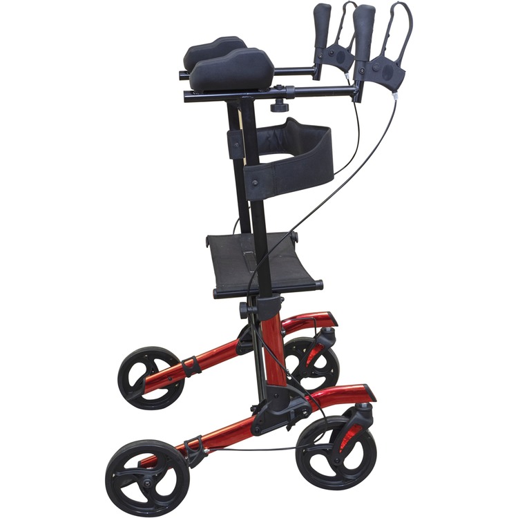 The red aluminum forearm rollator allows the user to bear their weight on the arms reducing the strain on their wrists and hands.