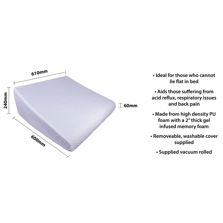 This wedge pillow enables a great nights sleep if lying flat is not possible.