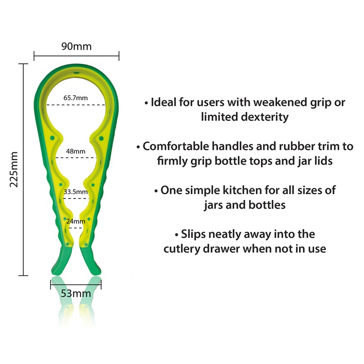 Green Multi Size Bottle and Jar Opener - Makes light work of opening jars for those with a weaker grip