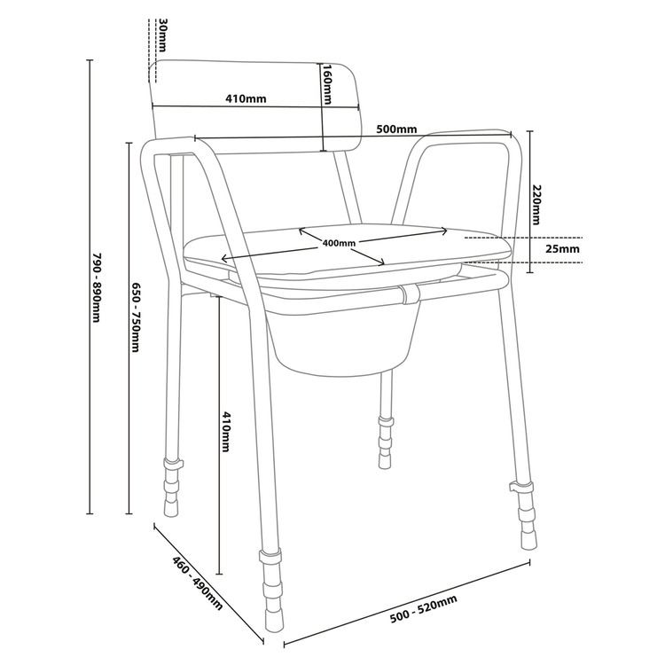 The Aidapt Bedside Commode Chair is height adjustable and stackable; a neat and practical commode chair suitable for use as a bedroom or bathroom commode. It is ideal for use in a care home setting or in a property with only a downstairs WC.