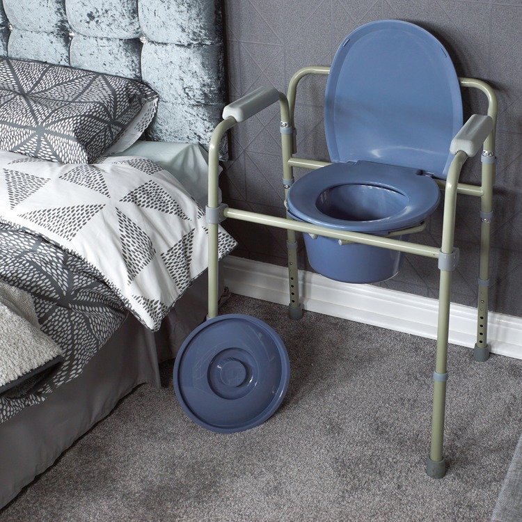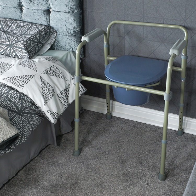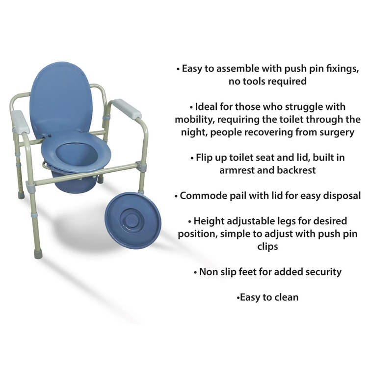 This commode toilet chair is ideal for use in the bedroom and around the home. Supplied with commode pail and lid.