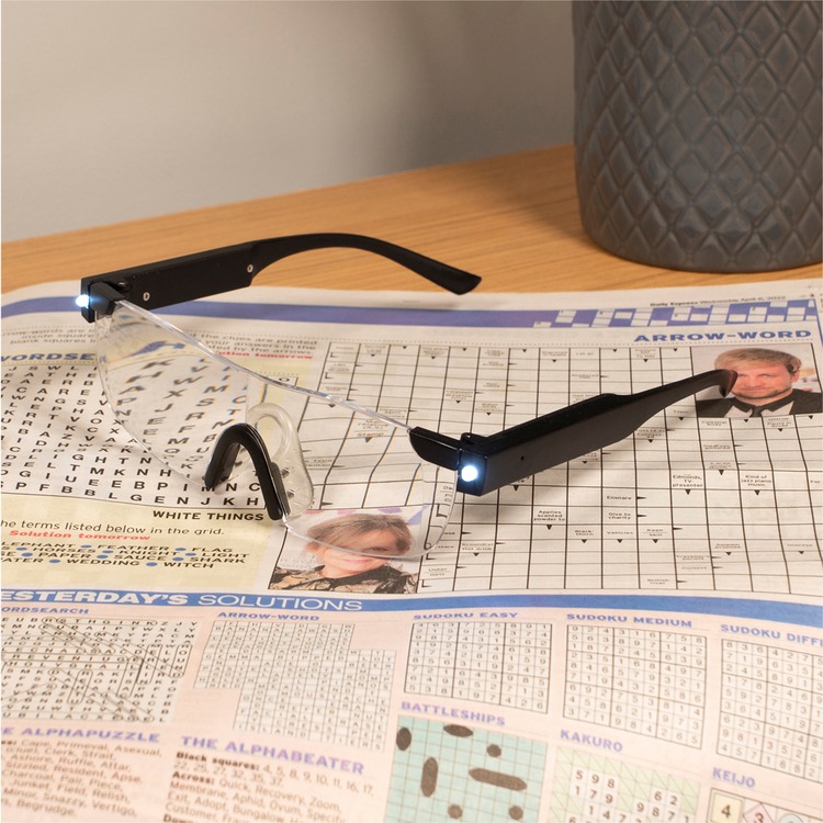 Make detailed tasks bigger and clearer with these hands free magnifying glasses. They feature LED lights which can be turned on and off with a discreet switch. The glasses are recharged using the provided USB lead.