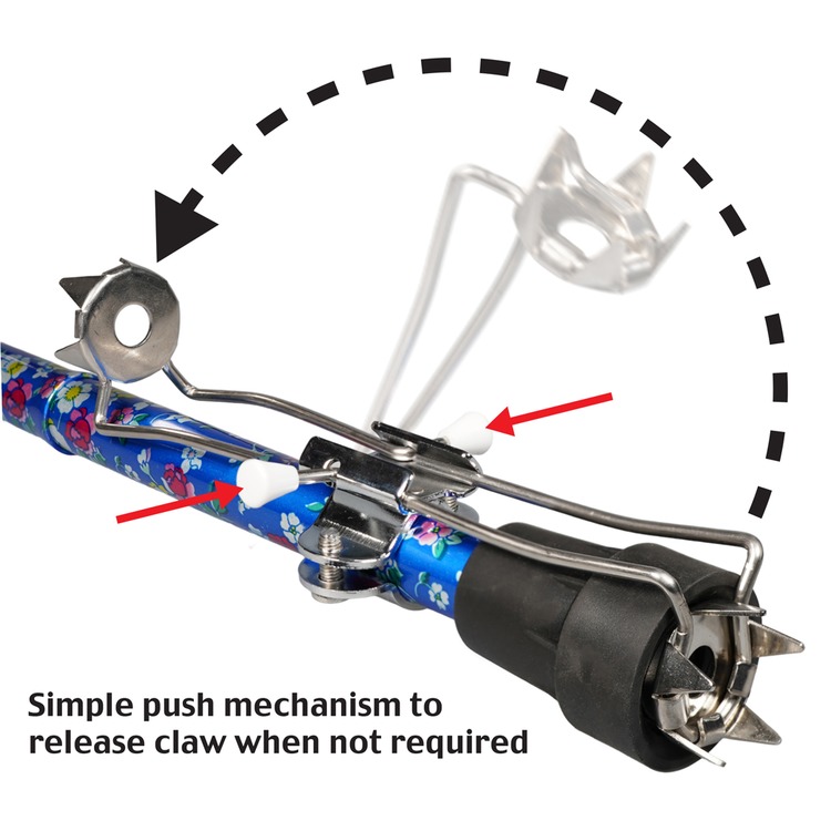 Introducing the Ice Grip Claw for Walking Sticks, your ultimate companion for icy adventures! Easily installable on your existing walking stick, this accessory provides unmatched grip on slippery surfaces. Its versatile design fits all walking stick tube sizes (16mm to 27mm) and can be effortlessly retracted for indoor use. Stay safe and confident during winter walks with this must-have addition.