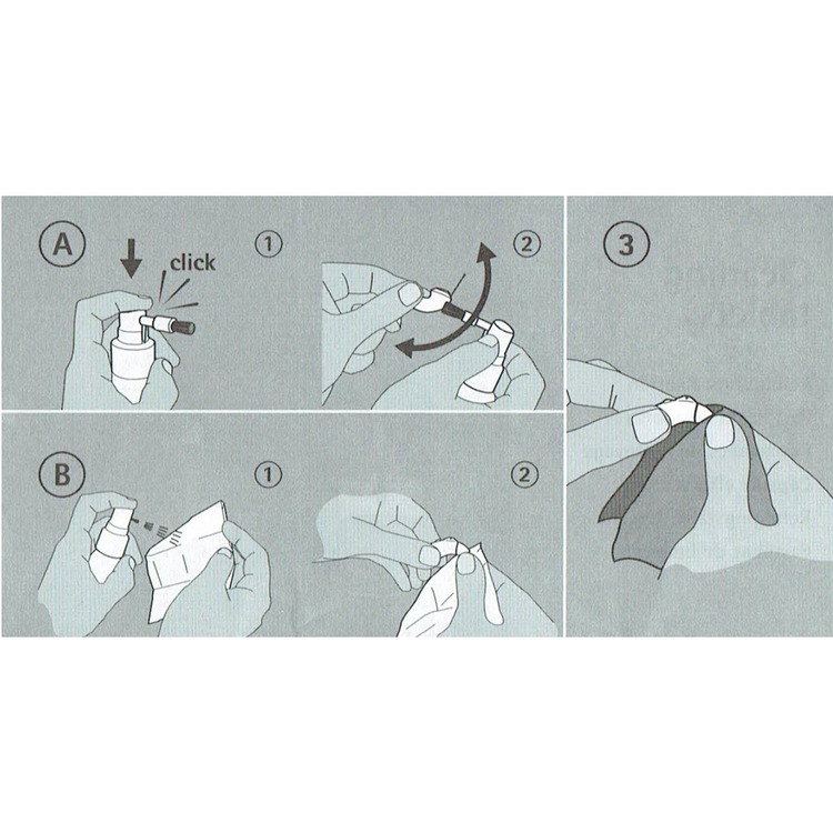 The cleaning spray is presented in the form of a plastic bottle filled with 1.01 fl. oz (30 mL) of solution. It is equipped with a valve, a diffuser and a brush. The spray button is equipped with a anti-rotation function, making more comfortable to use the spray.