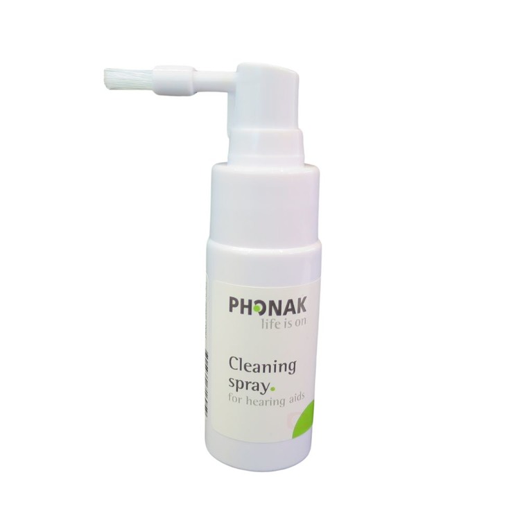 The Phonak 30ml Finger Pump Spray with optional brush head for cleaning hearing aids, earmoulds, tubing & domes is for the cleaning and maintenance of hearing aids and earmolds. It removes earwax which is responsible for the decrease in sound quality, increases the life of hearing systems and preserves their effectiveness of the hearing aid.