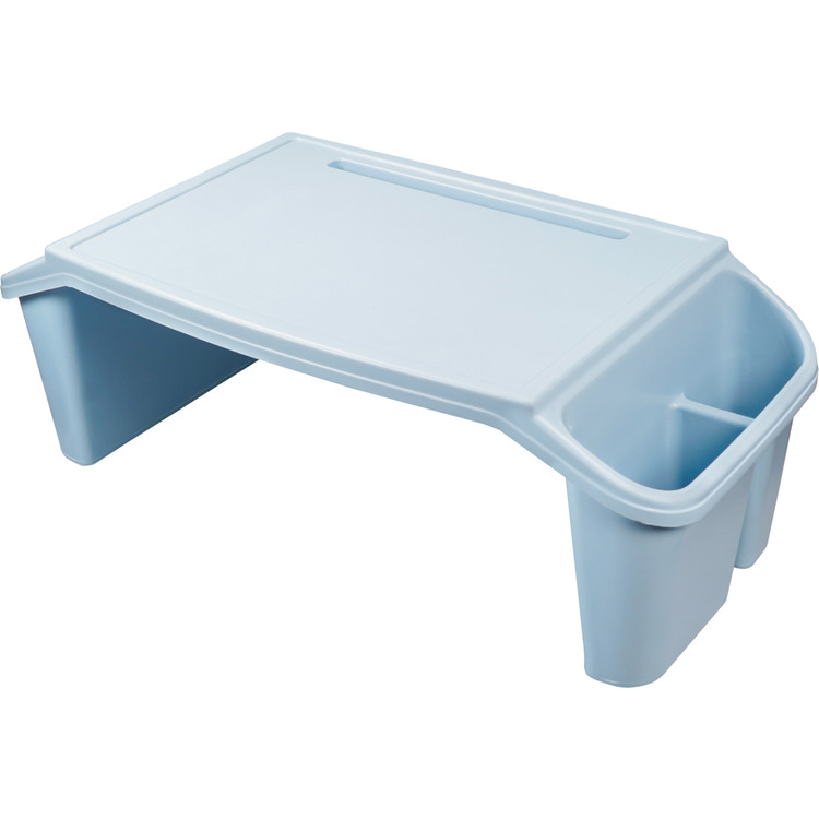Easy to clean blue all-purpose tray table made from durable plastic and designed to fit over the upper legs whilst lying in bed or sitting on a couch/sofa.