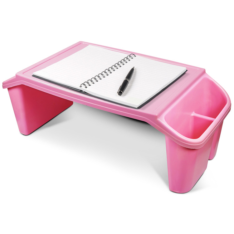 Easy to clean Pink all-purpose tray table made from durable plastic and designed to fit over the upper legs whilst lying in bed or sitting on a couch/sofa.