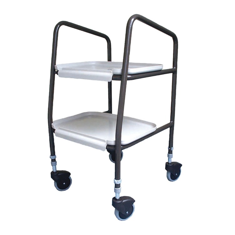 The Wingmore Height Adjustable Trolley (in increments of 25 mm) is the ideal solution to enable safe and easy transfer of meals around the house. The tray of the kitchen trolley has a unique patented (GB 2389801) clip-on/clip-off feature making it ideal for easy cleaning, recycling and reissue.The castors, manufactured from polypropylene, are amazingly resistant to damage, they also incorporate a patented wheel guard to reduce hair and fibre entrapment.