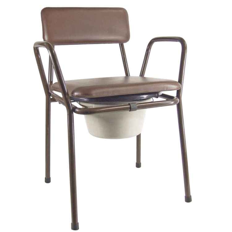This brown Kent Stacking Commode Chair is a neat and practical commode manufactured to exacting standards, suitable for use as a bedroom commode or bathroom commode.