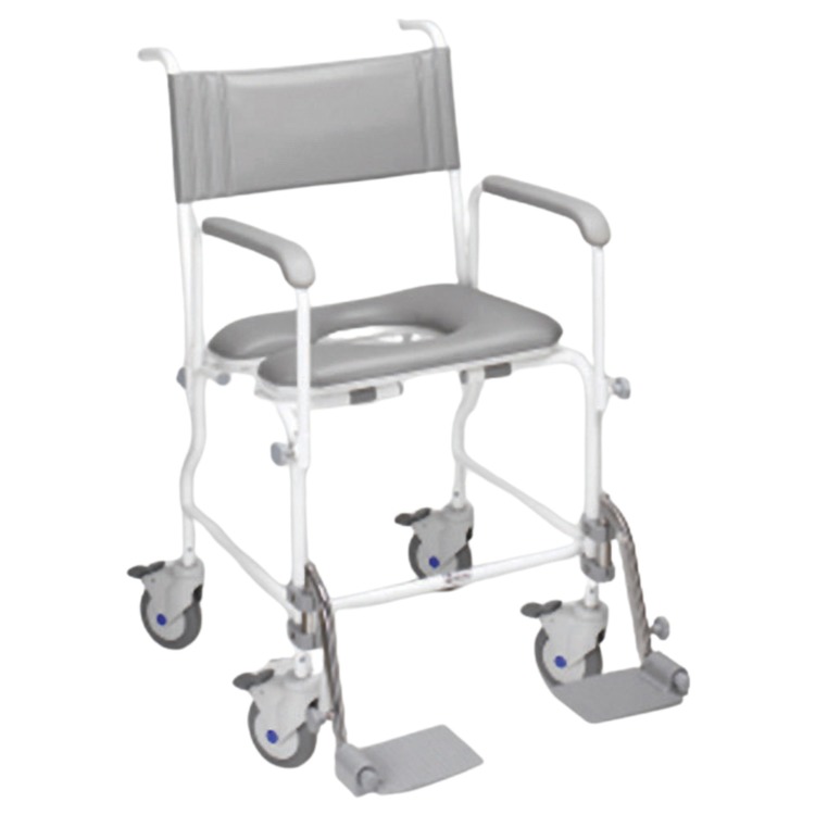 The Aquamaster Attendant Propelled Shower Commode Chair is a range of height adjustable shower and toileting chairs featuring a rigid one piece, side-access frame and available in 3 widths. This model seat is 480mm (19").