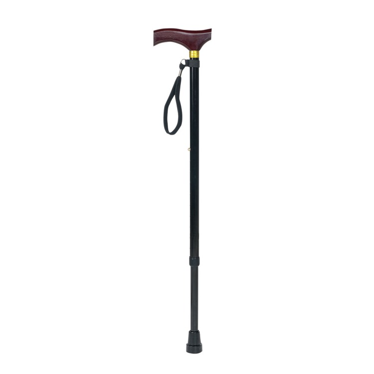 A height adjustable (10 settings), extending walking stick, for use with either hand.