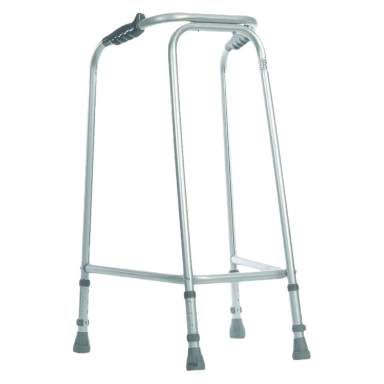 The slim aluminium walking frame has soft grip handles and is fully height adjustable.