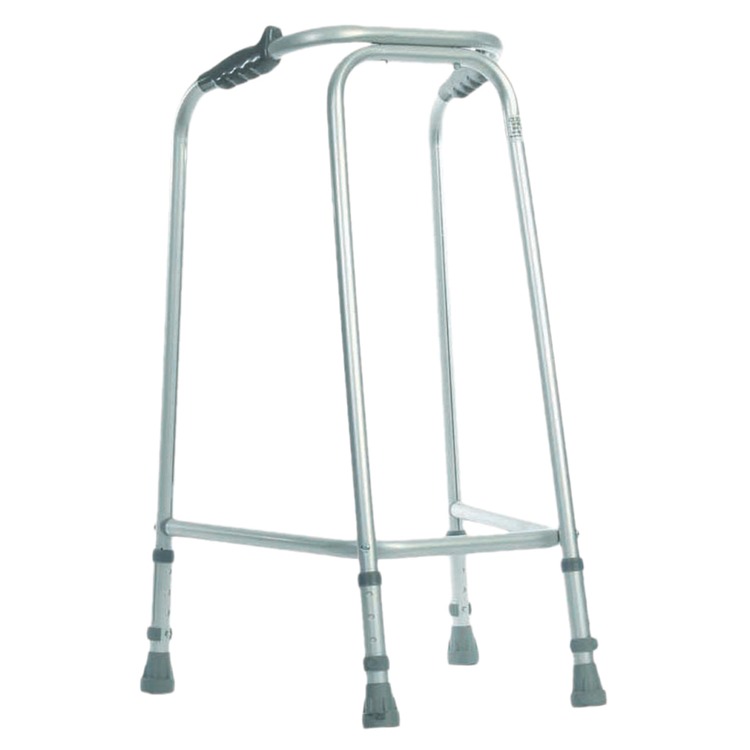 The slim aluminium walking frame has soft grip handles and is fully height adjustable.