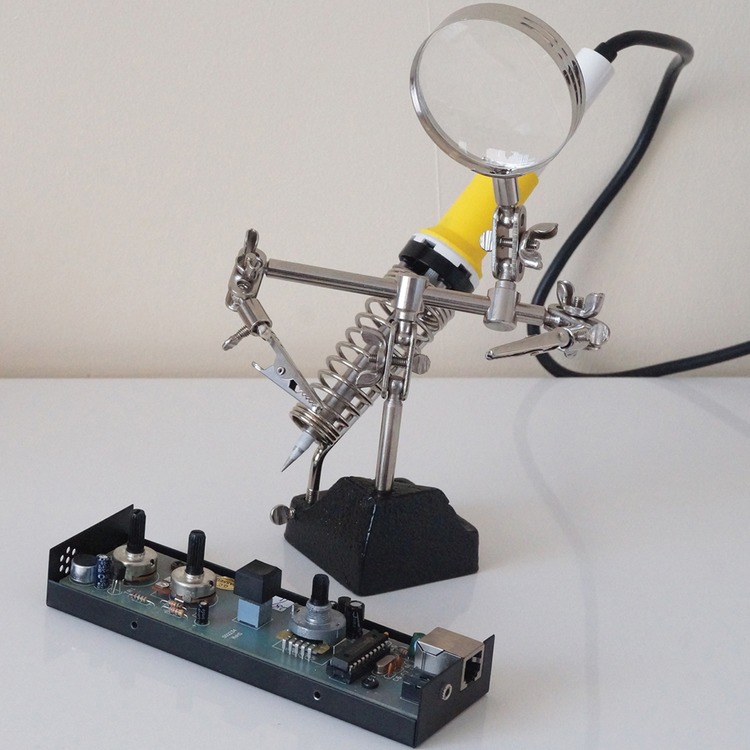 Helping hands tool featuring a round, 60 mm magnifier lens