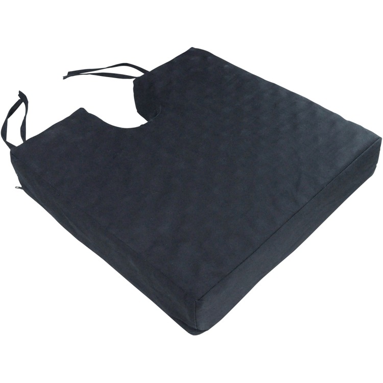 Featuring a black cotton twill cover with two pairs of straps to secure the cushion to a wheelchair or dining chairs.