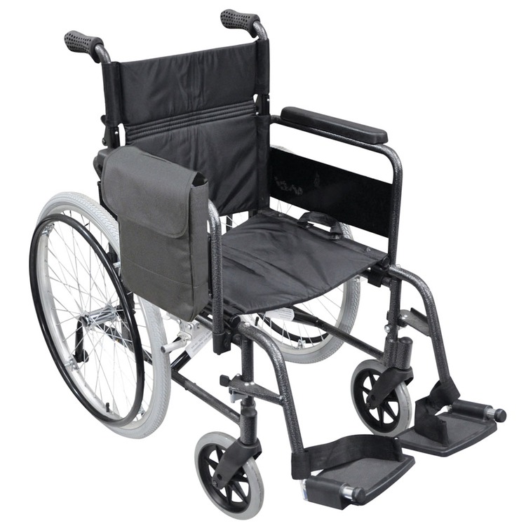 It is a practical and affordable wheelchair accessory and enables wheelchair users and their carers to safely carry more, while keeping their hands free. The Wheelchair Pannier Bag is water resistant and features a single large compartment with a flap sealed by 'hook and loop tape'.
